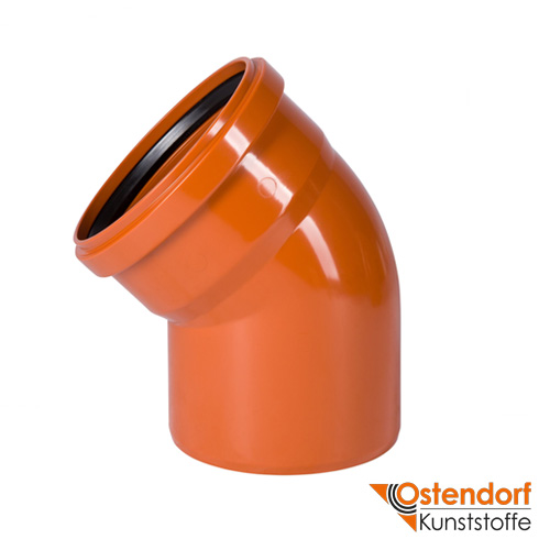 Коліно каналізаційне Ostendorf KG Ø 250 мм 45° застосовується при монтажі каналізаційних систем для забезпечення нахилу трубопроводу під кут 45°. Цей фітинг відноситься до системи зовнішньої каналізації KG ПВХ від виробника Ostendorf. Дана система повністю відповідає вимогам до водостійкості, терміну служби та простоті експлуатації. Тому вона забезпечує надійний захист довкілля від забруднень стічними водами.
