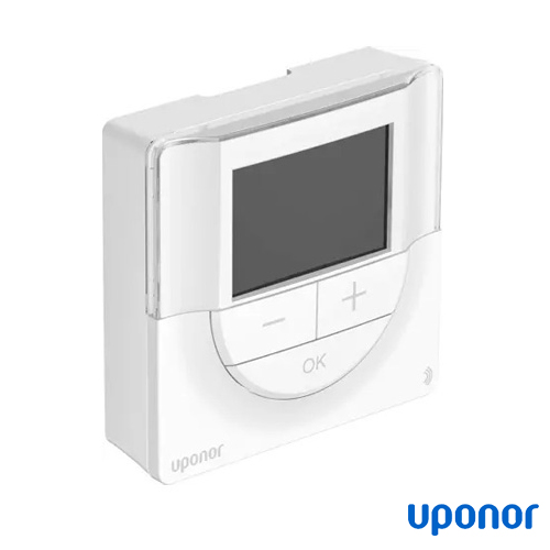 Uponor Smatrix Wave T-168 RAL9016 - бездротовий програмований термостат з датчиком відносної вологості. Пристрій вимірює і відображає вологість і температуру в приміщенні, потім передає дані на бездротовий контролер.